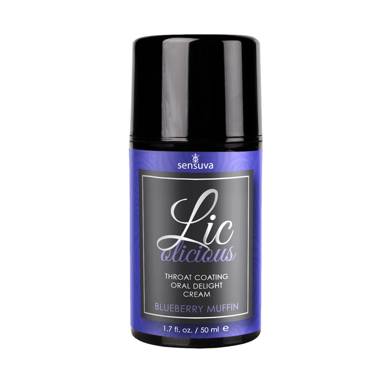 Lic O licious Blueberry Muffin Oral Delight Cream. His pleasure will be your pleasure with sweet Lic-o-licious, Sensuvas Throat Coating Oral Delight Cream. This sweet edible cream is all that you will taste because it keeps the tongue and throat completely coated. The sensual oily consistency stays present in the mouth longer than typical oral gels, allowing you to take your love deeper than ever before. 1.7 fluid ounces. Lic-O-Licious Throat Coating Cream ingredients: Water, Carthamus Tinctorius Safflower Seed Oil, Caprylic/Capric Triglyceride Coconut Oil, Emulsifying Wax, Lecithin, Melaleuca Alternifolia Tea Tree, Leaf Oil, Dimethicone, Stearic Acid, Propylene Glycol, Polyacrylate, Polyisobutene, Polysorbate, Gluconolactone, Sodium Benzoate, Sucralose, Citric Acid, Potassium Sorbate, Natural & Artificial Flavors, (May contain +/-) CI 42090 Blue 1, CI 15985 Yellow 6, CI 26100 Red 17.